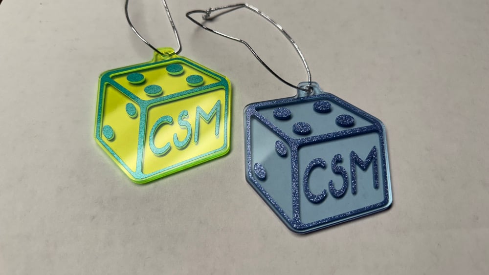 Material: High grade cast fluorescent acrylic, chrome vinyl & chrome stretch string
